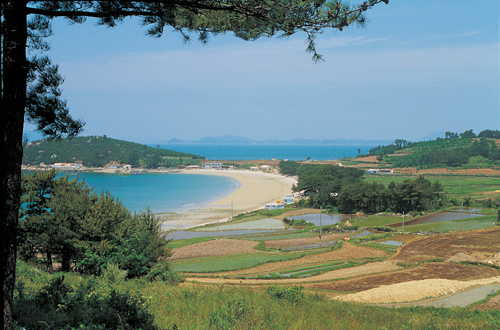 ꏊ 해수욕장 인근에 민박 20여집. 야영가능. 면소재지인 도청리에 10여곳의 횟집이 있다.